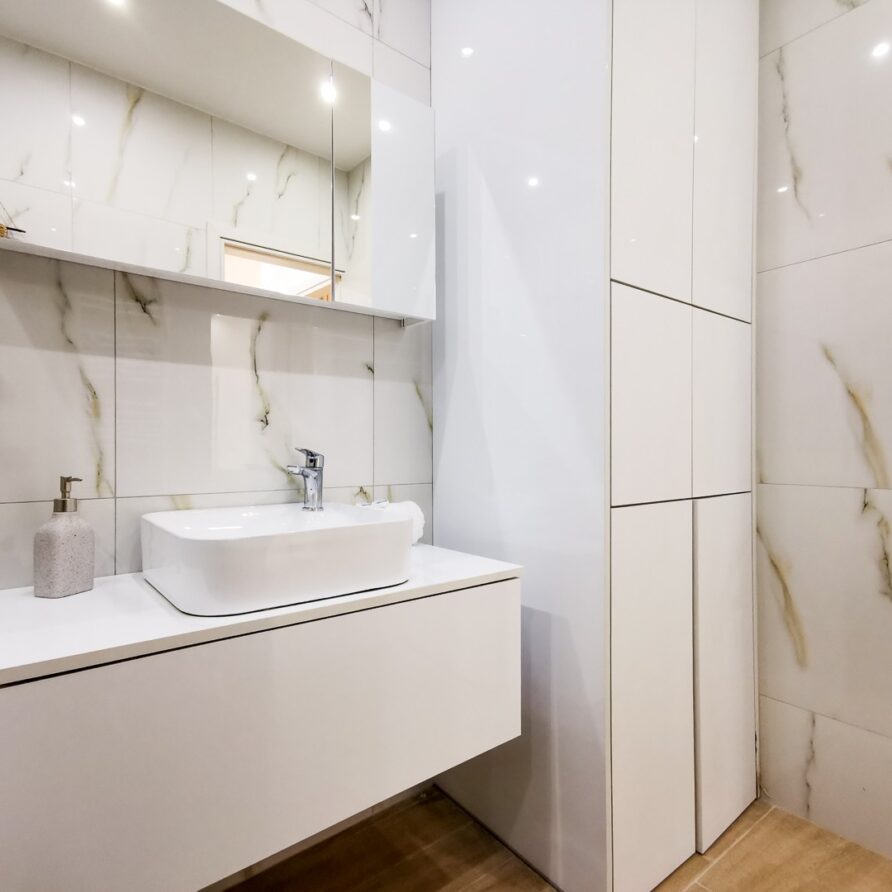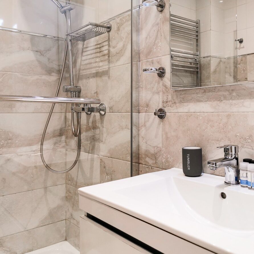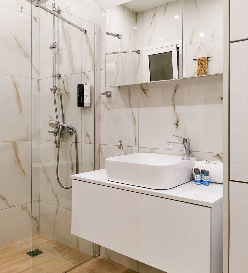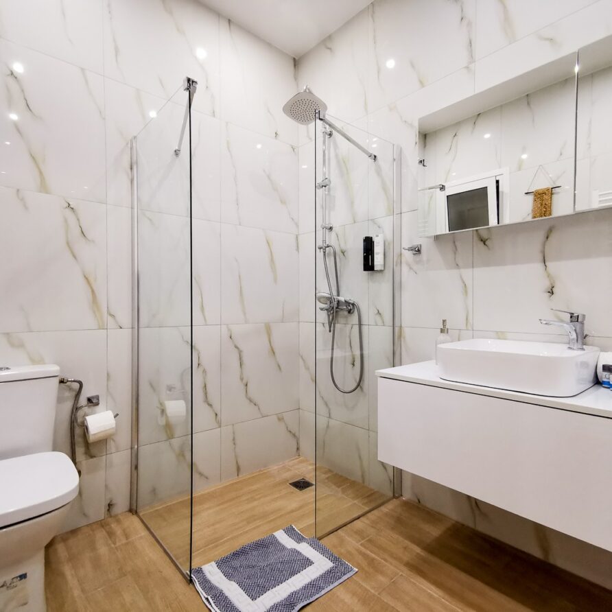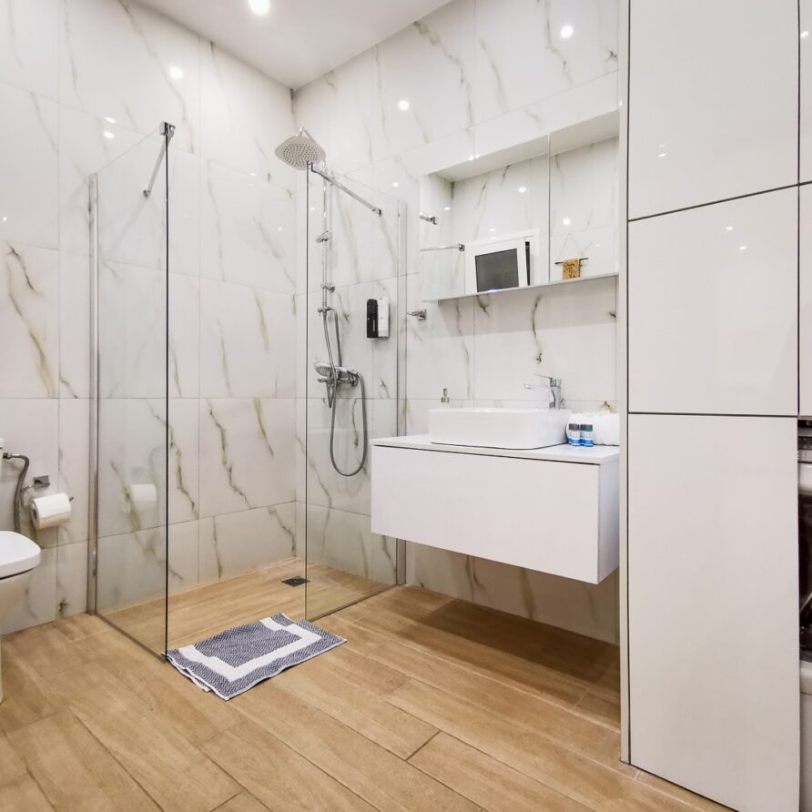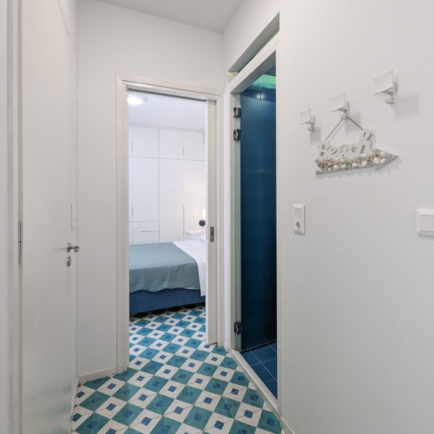 The apartment features 2 bedrooms – one of them is a master bedroom with bathroom (both BD have double sized beds), an open plan living room/dining room/kitchen with fitted electrical appliances, 2 full bathrooms and a balcony where you can enjoy your breakfast. The property has also a reinforced security door, aluminum windows with double glazing and autonomous cooling/heating.